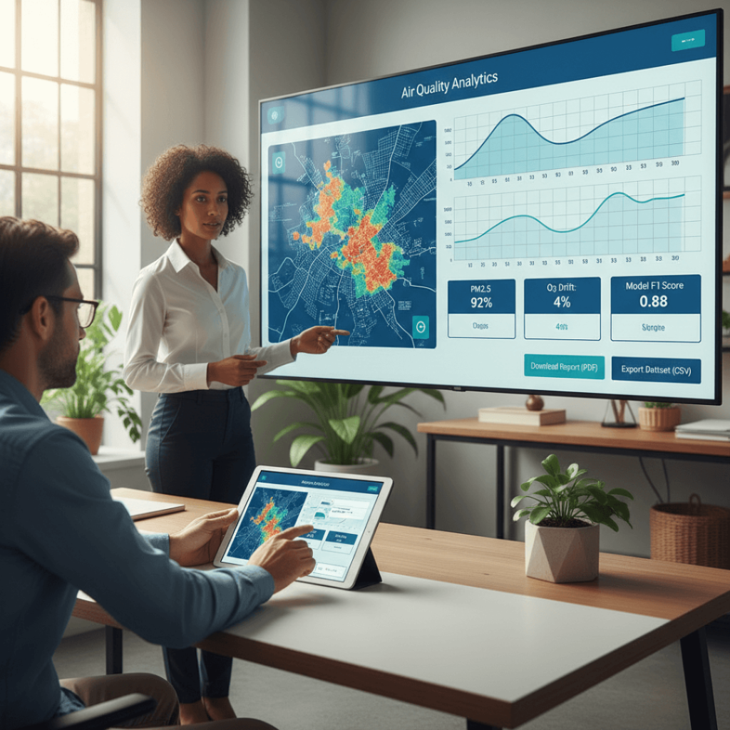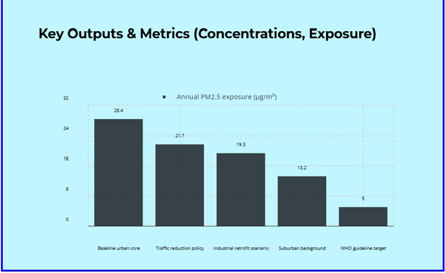We build and run air-quality models to estimate pollution (PM 2.5, PM 10, NO₂, O₃) across locations and time, turning emissions + weather + monitoring data into actionable insights.