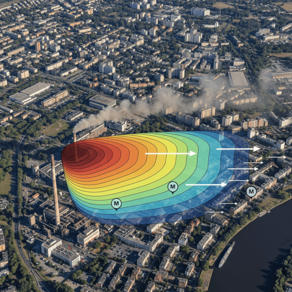 Gaussian and Lagrangian dispersion models simulate source-to-receptor transport using hourly emissions, stack parameters, and meteorology, resolving street-to-neighborhood scales for regulatory screening and hotspot diagnostics.